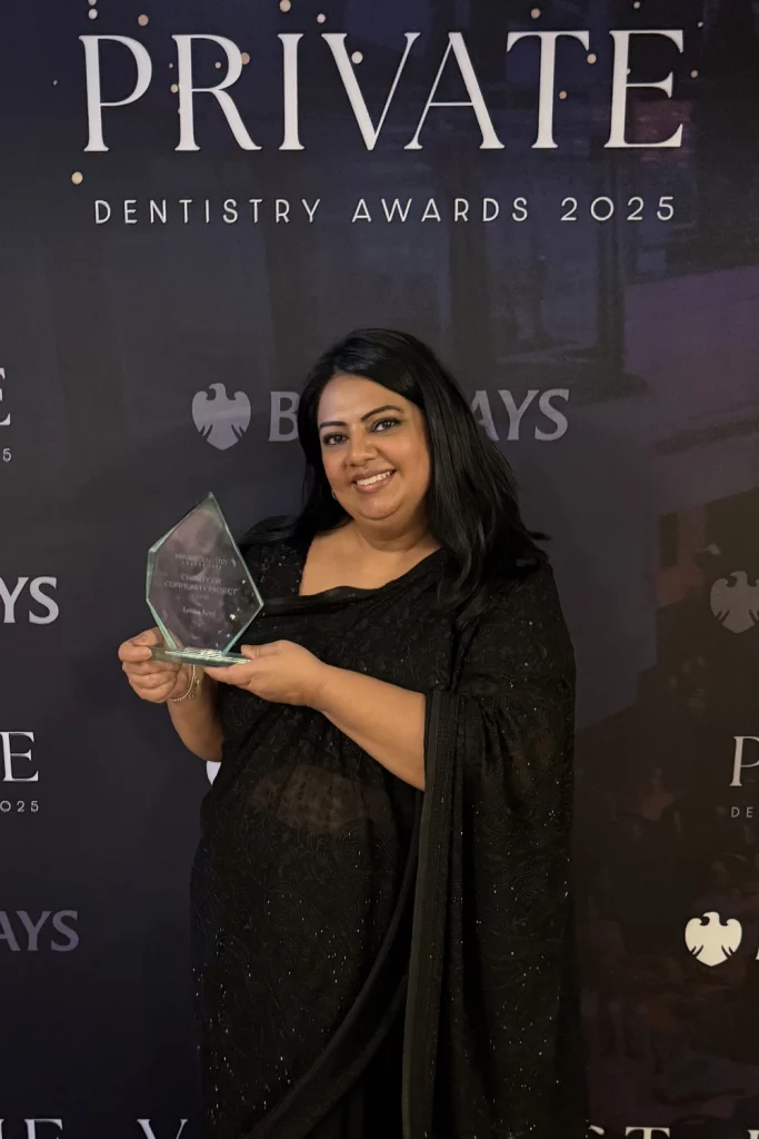 My dedication has been recognised with multiple industry awards, including Dental Hygienist of the Year at the Private Dentistry Awards (2022, 2023,2024, three consecutive years), Clinical Dentistry Awards (2004) and Dental Hygienist of the Year at The Dentistry Awards (2022, 2023).